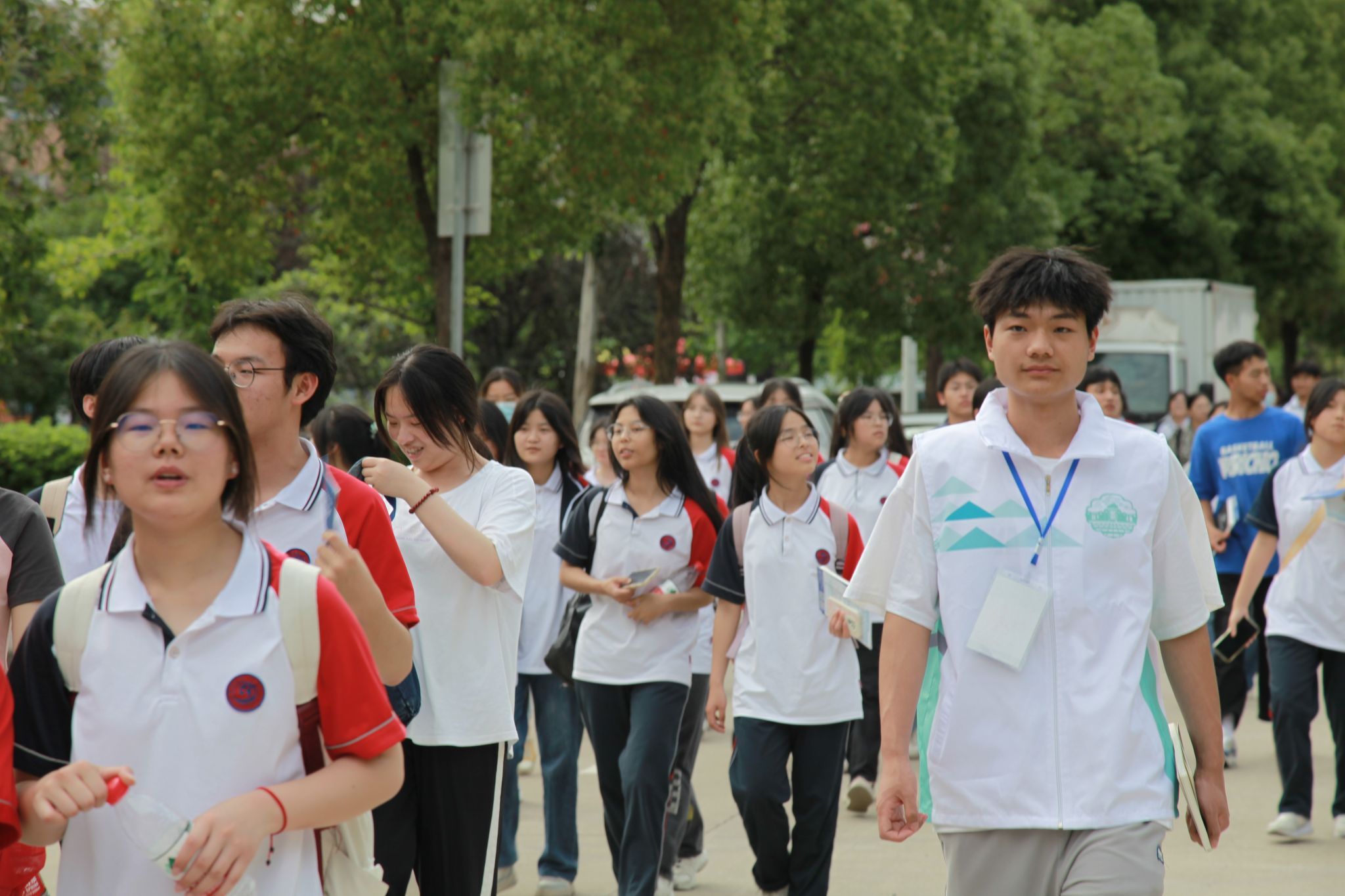 志愿者护送罗田一中的同学们 吴毅萌摄